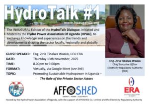 The HydroPower Association of Uganda will have their inaugural HydroTalk on Thursday November 13th.